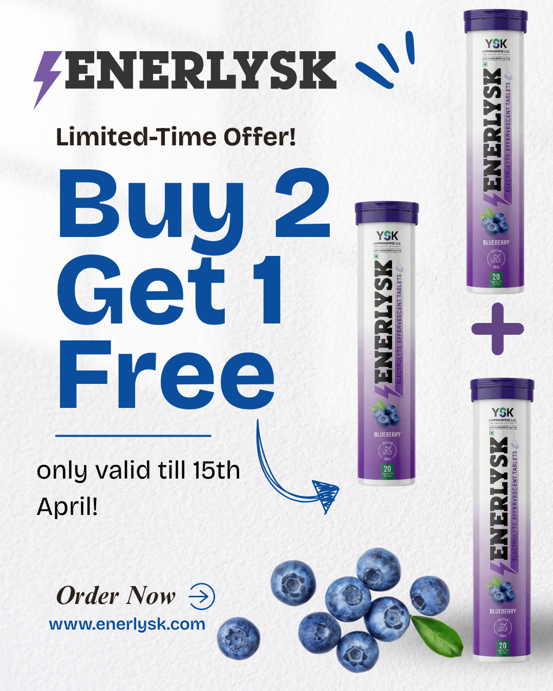 ENERLYSK offers sugar-free electrolyte tablets in effervescent form for fast absorption and daily hydration. Designed for Indian climates and active lifestyles, ENERLYSK supports hydration without added sugar, making it ideal for sports, fitness, travel, and everyday wellness.
